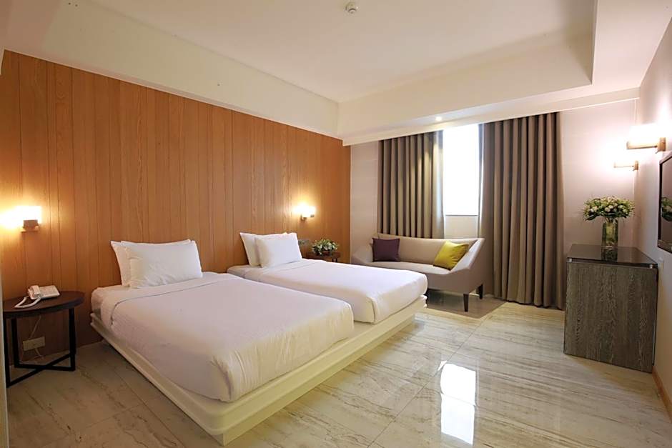 The spacious twin room provides air conditioning, a wardrobe, as well as a private bathroom featuring a hairdryer and slippers. This twin room offers an electric kettle, a TV and city views. The unit offers 2 beds.